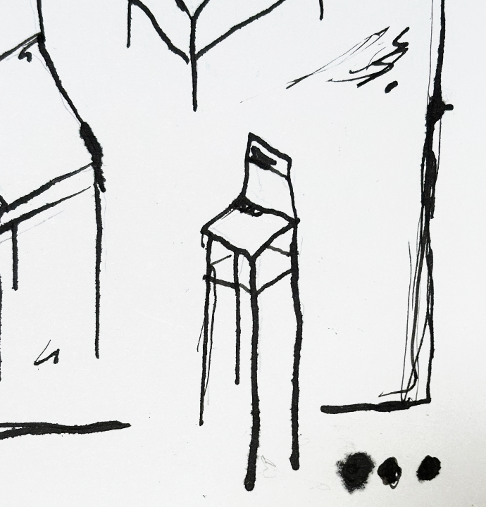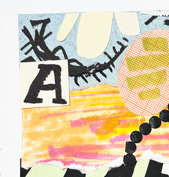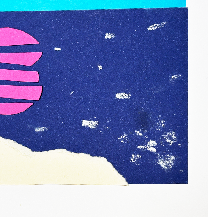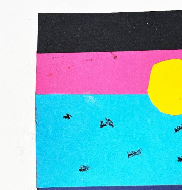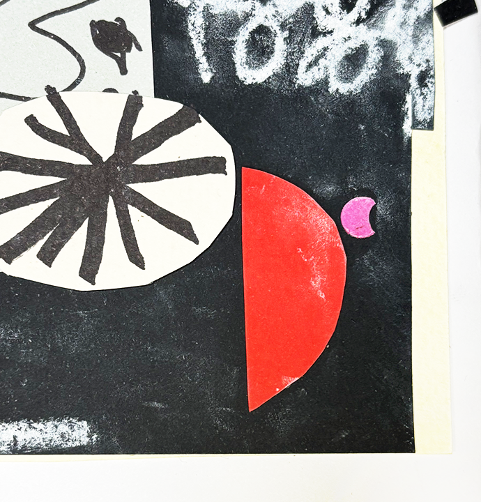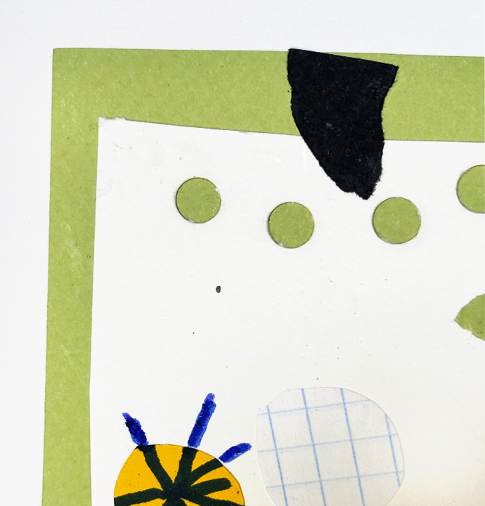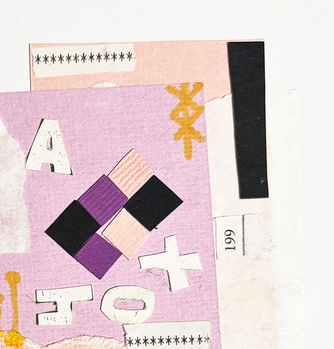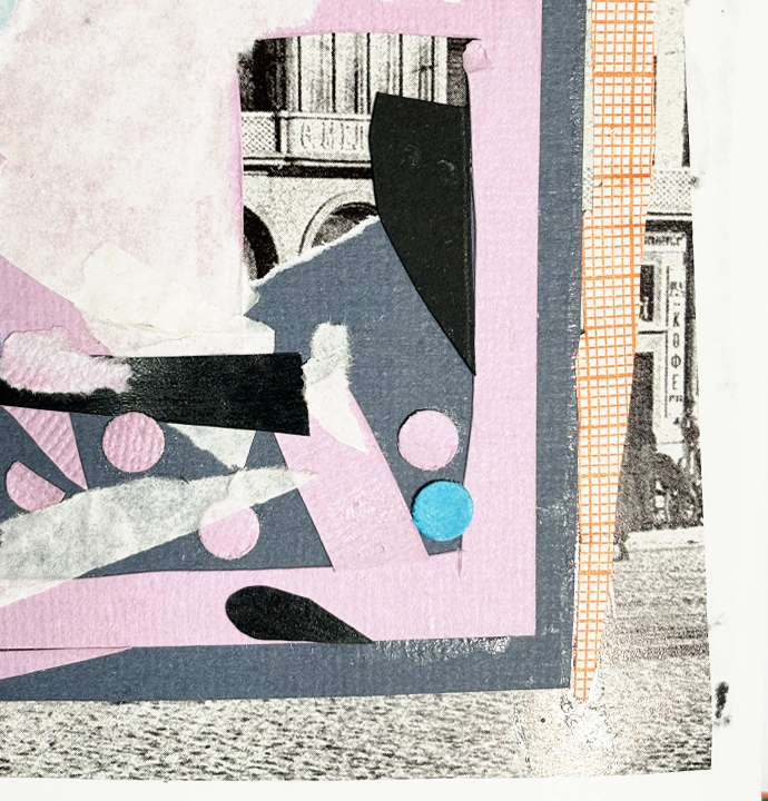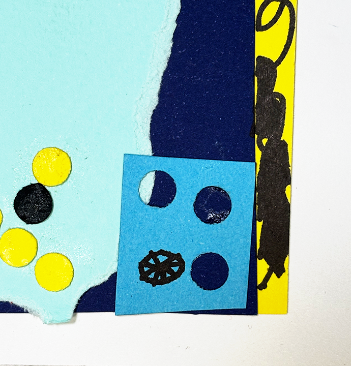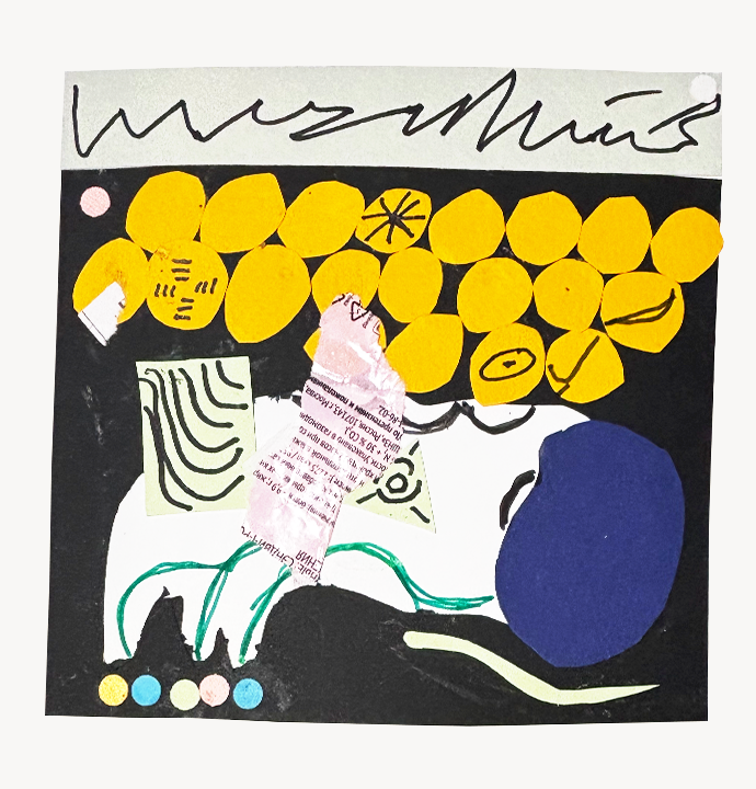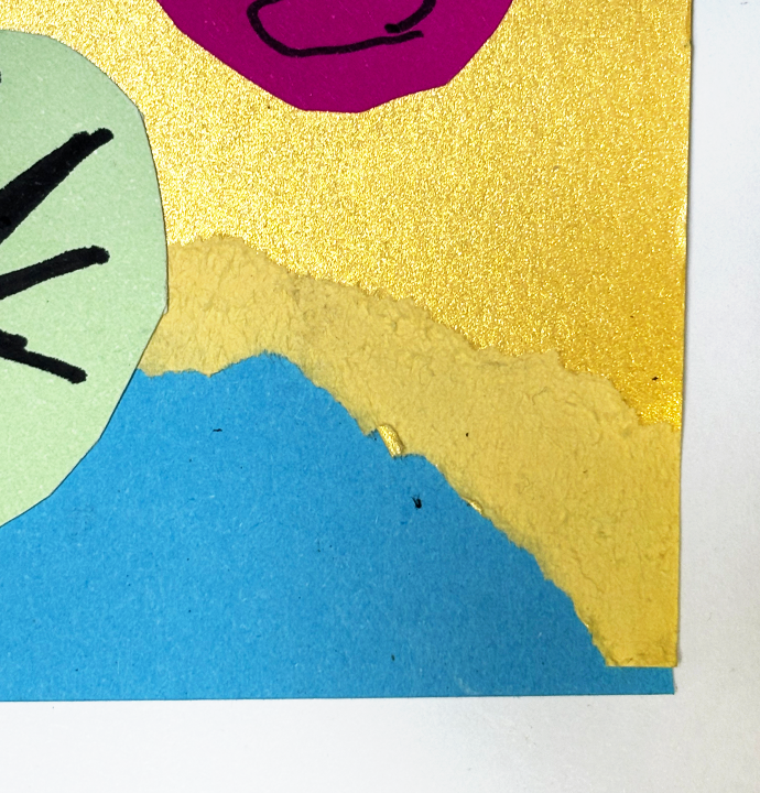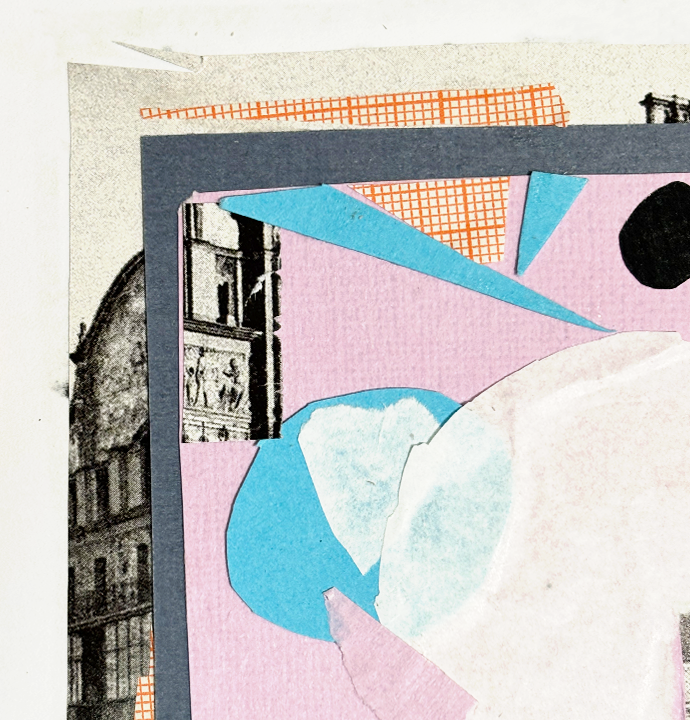 Бумага, мысль и неторопливое действие — так начинается работа. Скетчи фиксируют настроение и ритм, нащупывают форму и цвет. Перед аппликацией я настраиваюсь: слушаю эмоцию, выбираю силуэт и палитру. Под тихий хруст бумаги и рез ножниц примеряю решения, проверяю, как они держатся вместе. Из заготовок собираю композицию. Когда она устойчиво звучит — закрепляю клеем. Затем — финальные штрихи: маркер, пастель или чернила — то, что точнее подчёркивает характер. Останавливаюсь, когда форма и цвет входят в баланс.